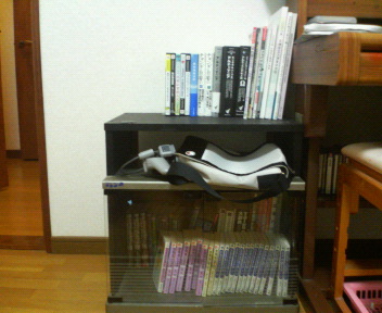 さりげにこの棚、元はテレビ置くための棚です(爆死(稀に姉の部屋にある小さなテレビを自分の部屋に持ってくることがあります